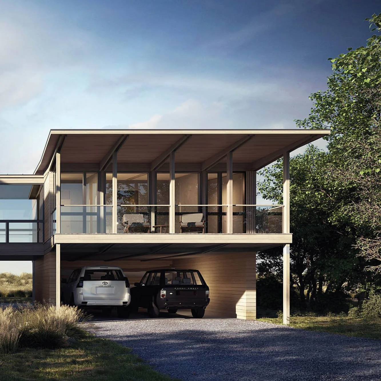 The cantilever is used to give a sense of ‘floating above water’, with a direct view straight out to the bay